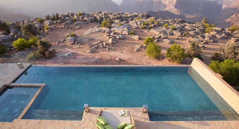 جبل اخضر برای کوهنوردی، عکاسی طبیعت، اقامت در هتلهای لوکس کوهستانی و تجربهی فرهنگ محلی بسیار مناسب است. هتل Anantara Al Jabal Al Akhdar یکی از معروفترین اقامتگاههای منطقه است.